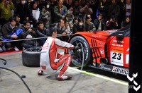 Nissan has a little demo at their booth showing how quickly a wheel is changed on a GT car.