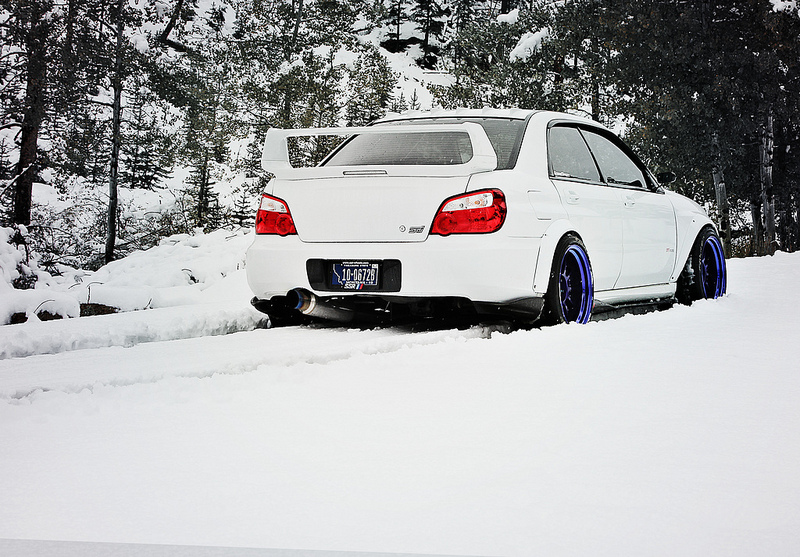 Well it’s not really snow plow but still pretty cool to see these snow pictures. This is Matt Mullaney’s STI with custom finished SP3 wheels. For more pictures from him, check out his Flickr account here