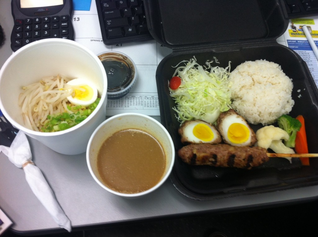 Here was the special that I got the first time. All this for $6! Ramen, Ninja Egg & Pork Tsukune Combo.
